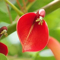 Boron deficiency in silver oak causes dieback and multiple side shoot development. The leaves are blunt, in marked contrast to healthy pointed leaves.